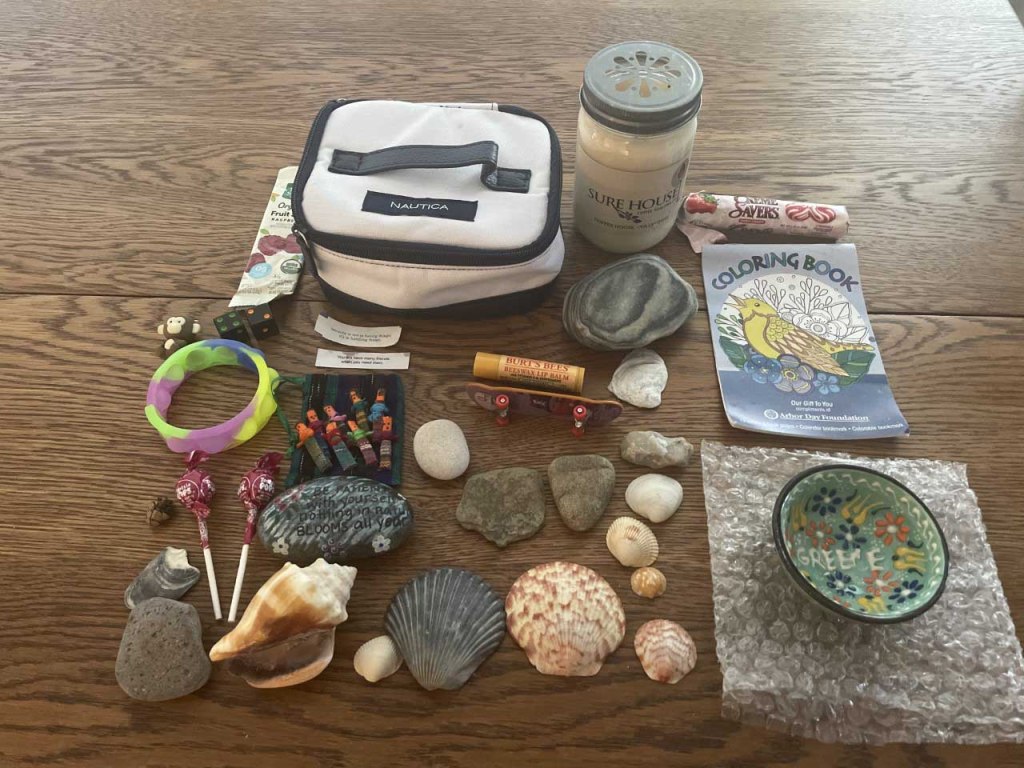 There are no “right” or “wrong” objects to include in a grounding kit and what works for one person may frustrate or even trigger another person. For example, if you have extreme sensitivities to noises and sounds, then a loud wind-up toy or popping bubble wrap is the opposite of helpful even if it’s the go-to strategy for someone else.