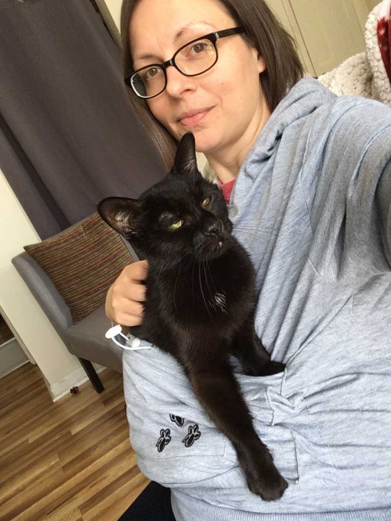 To offset her violent disposition, the universe blessed her with an equal proportion of sweetness and snuggliness, the likes of which I’d never experienced with another cat before or since. This softer side was reserved mostly for just one person: me. Even after years of living together, my ex-husband was still ecstatic any time he was lucky enough to have even a brief chance to touch her – these were such noteworthy occasions that they warranted text messages exclaiming, “I got three pets in this morning!”