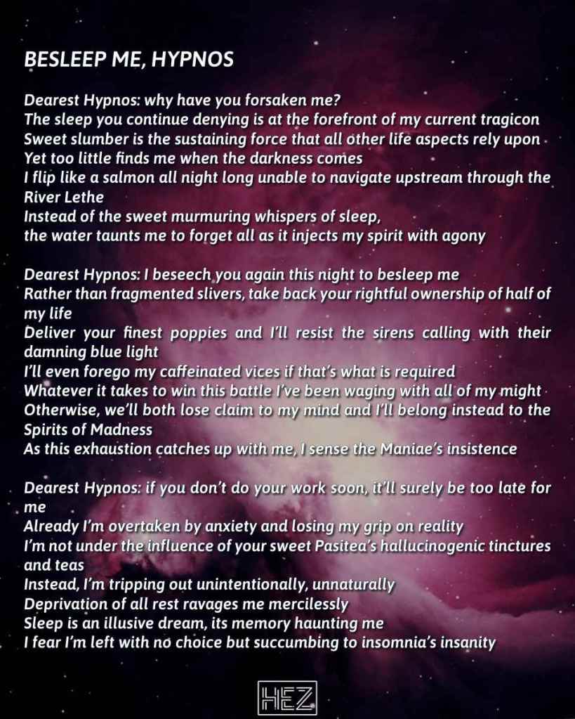 Somehow my ongoing insomnia issues merged with Greek mythology. Enjoy!